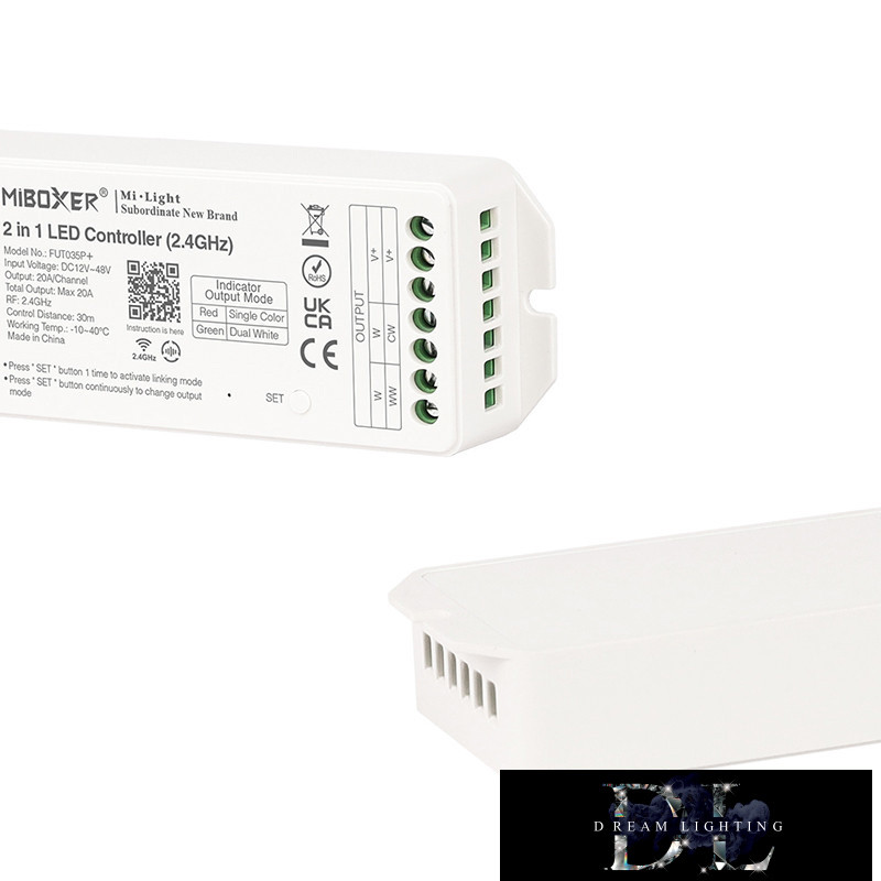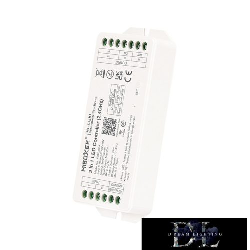 MIBOXER 2v1 RF 2,4G SIMA/CCT ovladač LED pásků DC: 12–48 V Max: 20 A